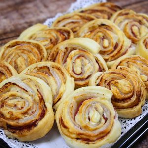 Unsere Blätterteigrolls gefühlt mit Gervais, herzhaften Räucherlachs und Kren.