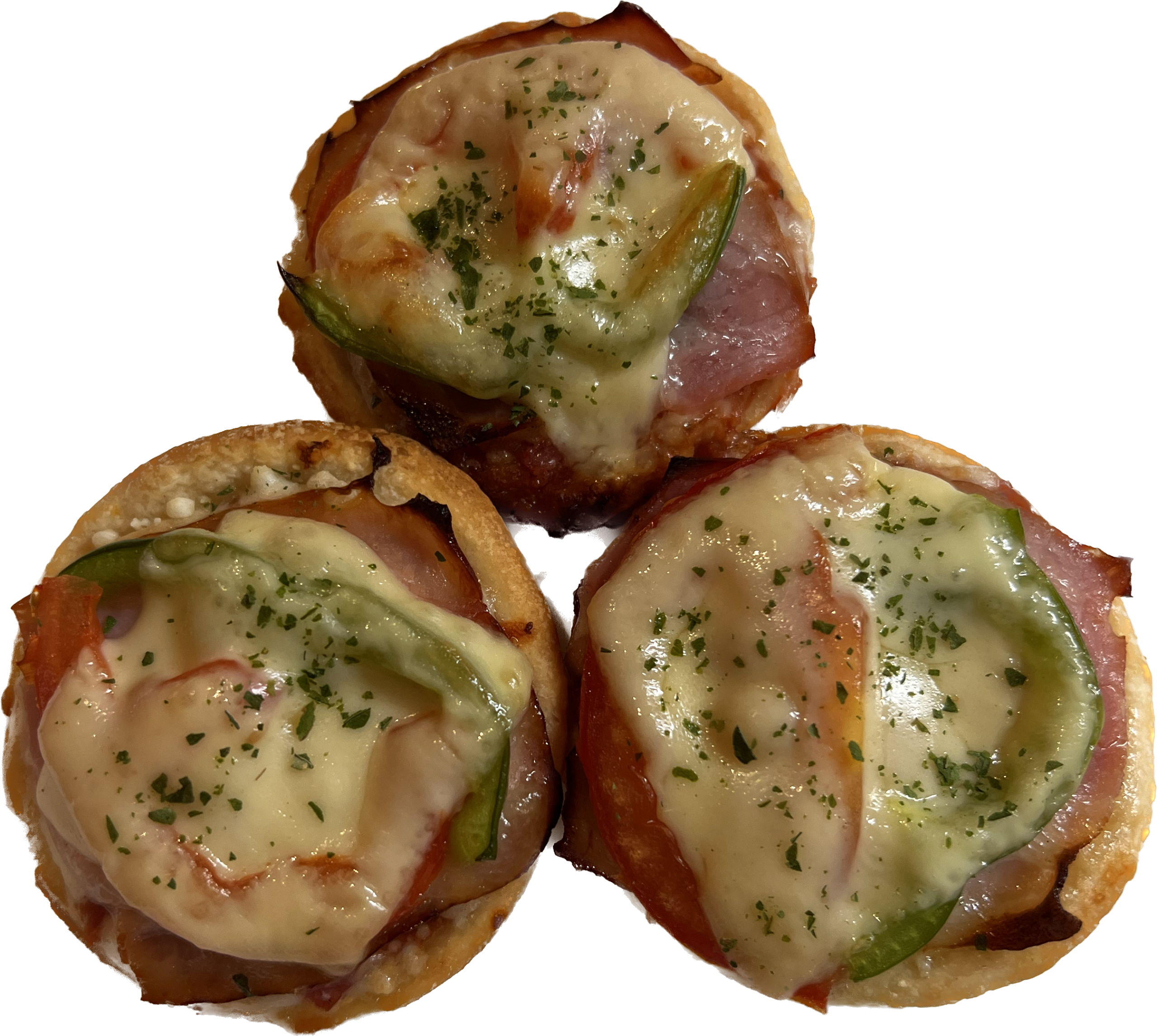 Unsere Minipizzen sind belegt mit Tomatensauce, Salami, Speck, Paprika, Tomaten und Käse
