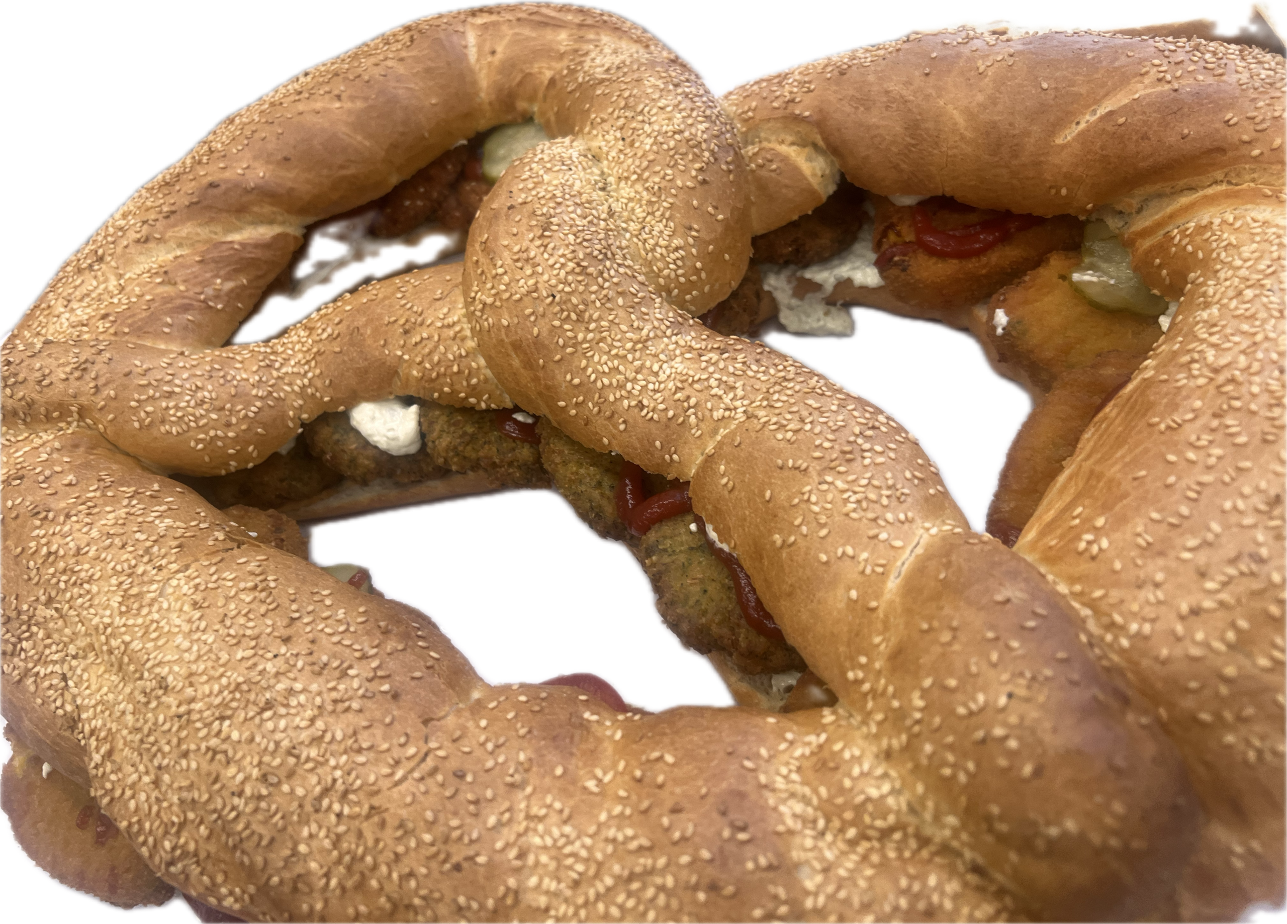 Sesambrezel in 3 Teilen belegt mit :