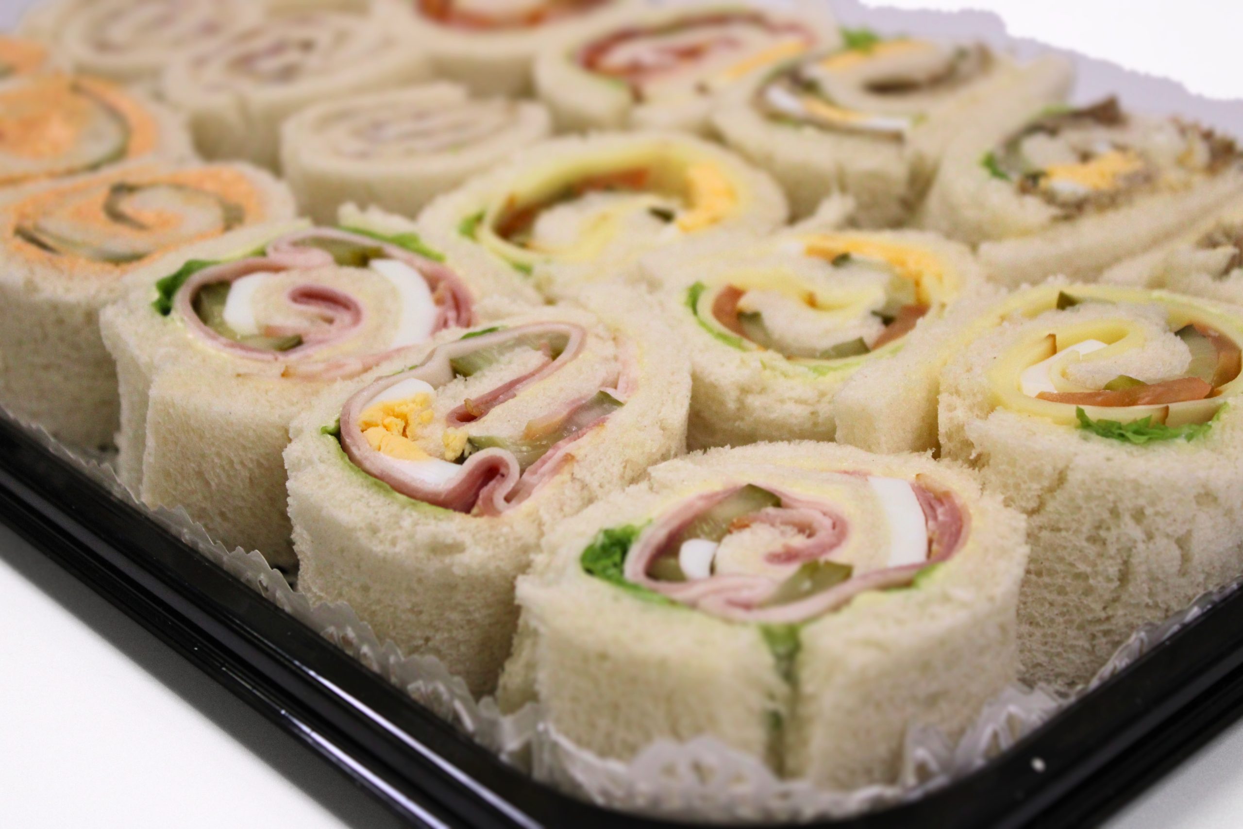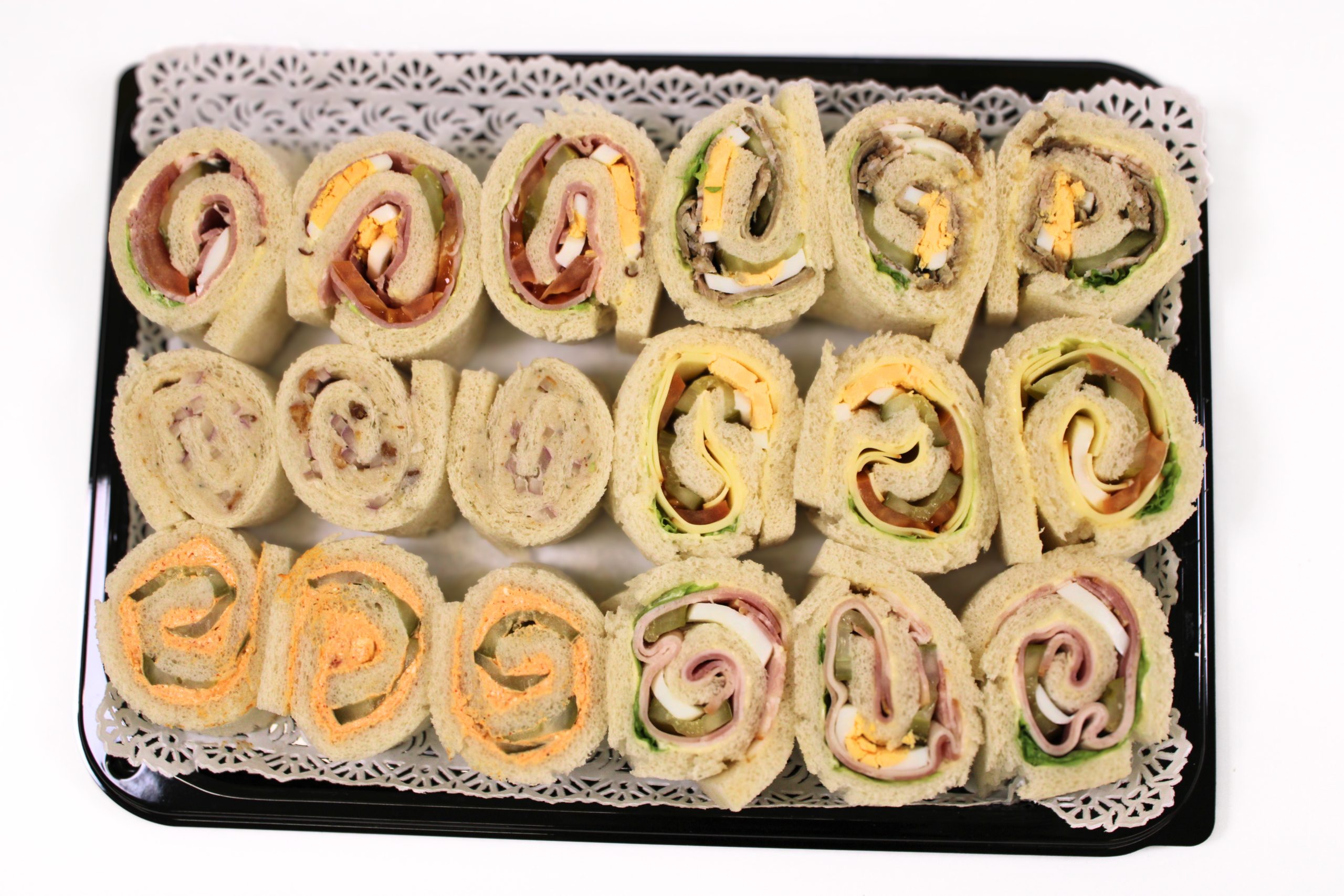 Die Box ist gefüllt mit 6 Sorten zu je 3 Stück aus soften gerolltem Weißbrot Rolls: