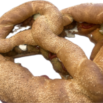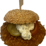 Vegane Brezel gefüllt mit: Saftigen veganen Gemüseschnitzerl , Gurkerl, Tomaten & Ketchup